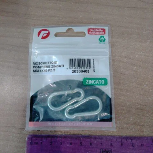2 Pezzi Moschettone Zincato Mm 4 X 40 Cod 20330405