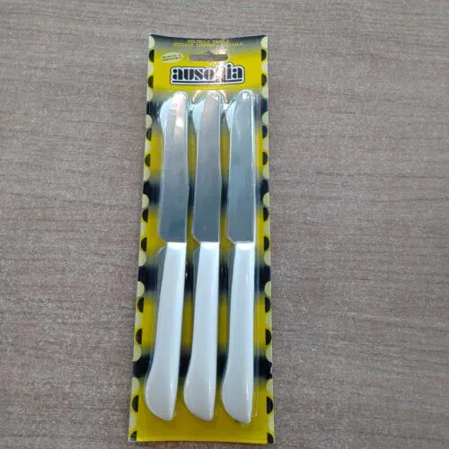 6 Coltelli Ausonia Manico Bianco Tutto Seghettato Acciaio Temprato cod.61640