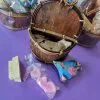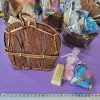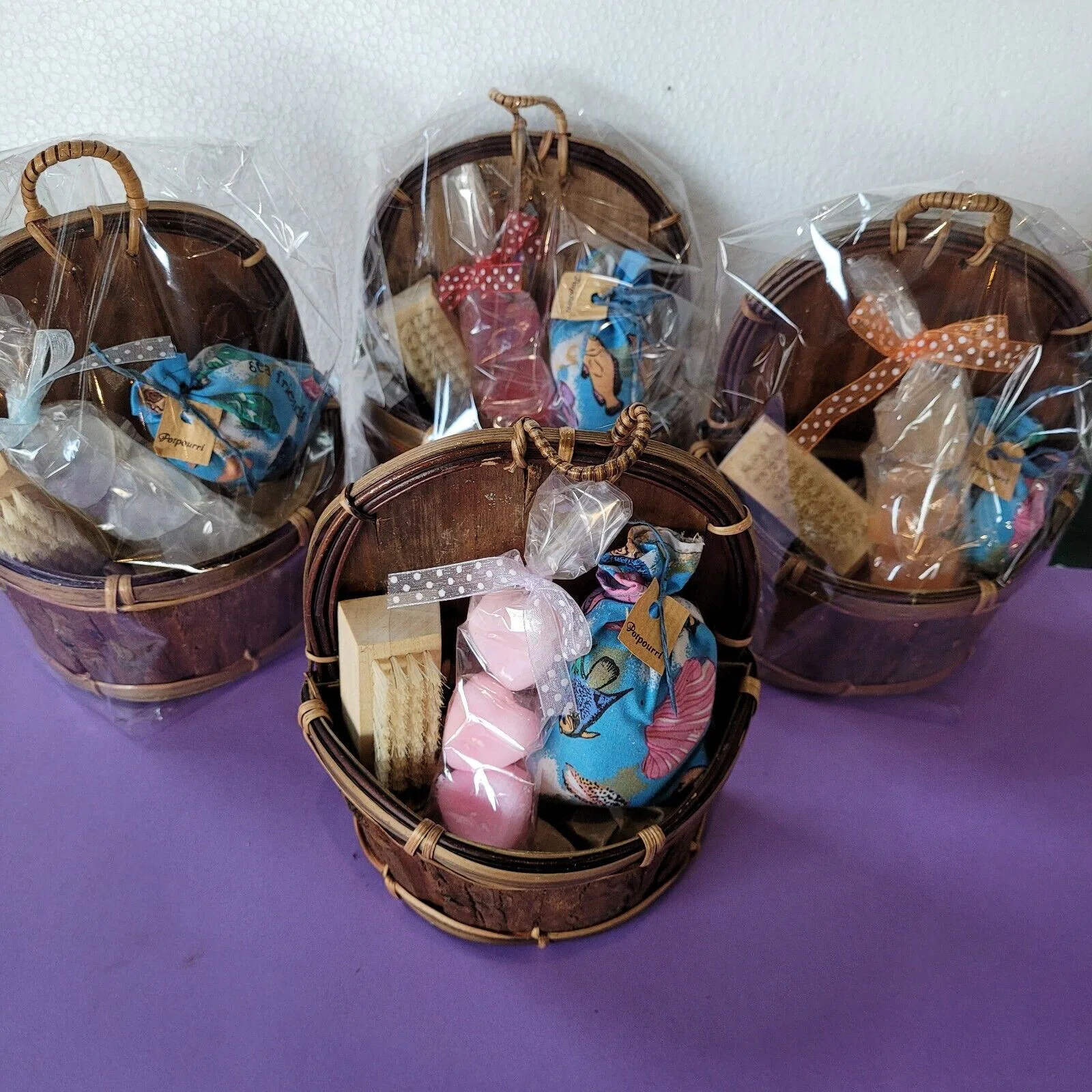 A) Cestino legno saponette profumate fiori secchi idea regalo artigianale sapone