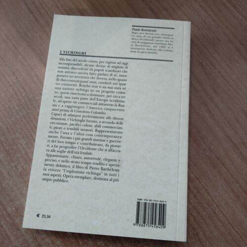 Alla fine del secolo ottavo, per ragioni ad oggi incomprensibili, alcune decine di migliaia di uomini, discendenti da popoli scandinavi che non avevano ancora fatto parlare di sé, intra- presero un'avventura che doveva, nello spazio di duecentocinquant'anni, condurli nei quat- tro continenti. Benché non vi sia mai stata né una nazione vichinga né un progetto comu- ne, questi riuscirono a dominare, per circa tre secoli, una vasta parte dell'Europa occidenta- le, ad aprire vie commerciali attraverso la Rus- sia e a raggiungere l'America cinquecento anni prima di Cristoforo Colombo. Capaci di adattarsi perfettamente alle diverse situazioni, i Vichinghi furono, a seconda delle circostanze, pacifici coloni, abili commercian- ti, pirati o temibili invasori. Rappresentarono anche l'una e l'altra cosa contemporanea- mente. Furono i più grandi marinai e guerrie- ri del loro tempo e contribuirono, da pionie- ri, a far progredire l’Occidente che si affaccia- va alle soglie dell'età feudale. Appassionante, chiaro, autorevole, elegante e preciso, e nello stesso tempo erudito e aperta- mente didattico, il libro di Pierre Barthélemy fa rivivere “l'esplosione vichinga" in tutti i suoi aspetti. Opera esemplare, destinata al più ampio pubblico.