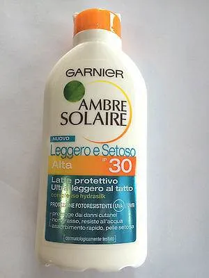 AMBRE SOLAIRE GARNIER LEGGERO E SETOSO LATTE PROTETTIVO IP30 FOTORESISTENTE