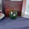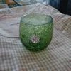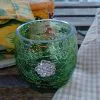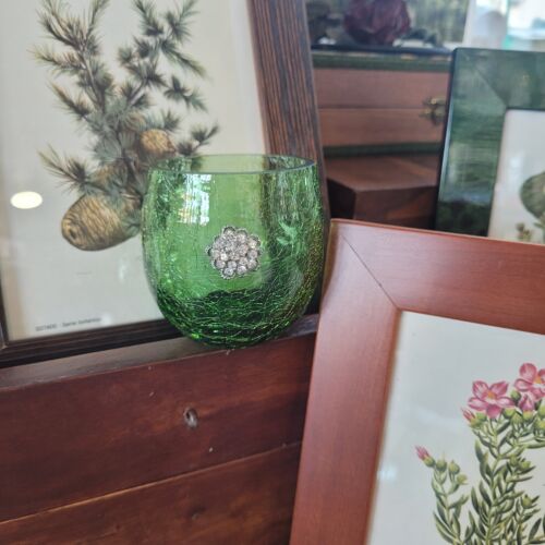 AR27) Vasetto Vetro Verde Craquelé Porta Candela Strass Vintage Collezionismo