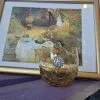 AR28) Vasetto Vetro Ambrato Craquelé Porta Candela Strass Vintage Collezionismo