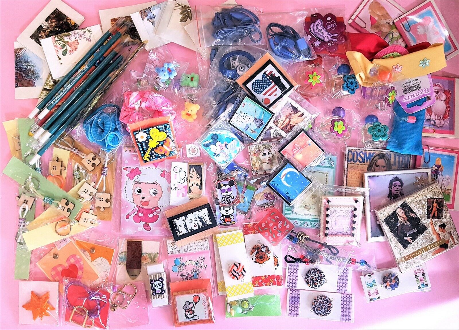 PORTACHIAVI CIONDOLI - PROFUMINI - BIGIOTTERIA - MEMO - CIONDOLI PER TELEFONO - ACCESSORI PER CAPELLI - AURICOLARI PER TELEFONINO - CALAMITE - CARTOLERIA - MATTONELLE DECORATE - IDEE REGALO - 100 PEZZI IN TUTTO