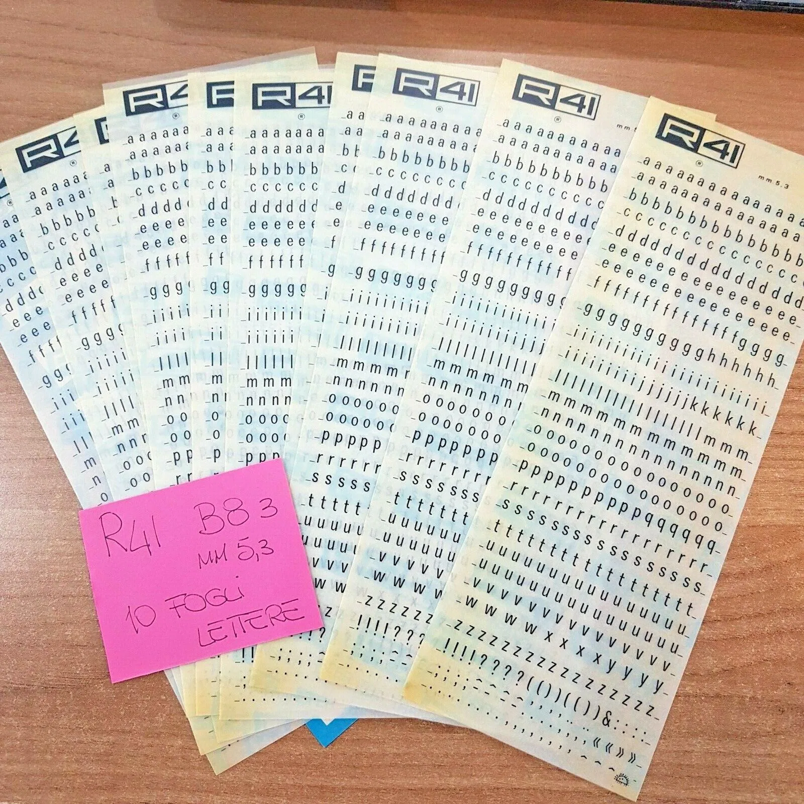 B8 3 mm.5,3 R41 trasferibili 10 fogli 25X8,5 raro VINTAGE LETTERE