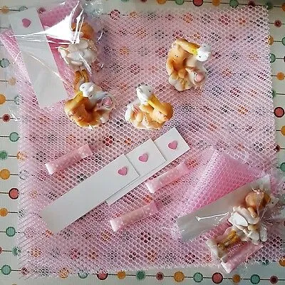 BOMBONIERE BATTESIMO NASCITA bimba cicogna rete nastro biglietto prezzo stock