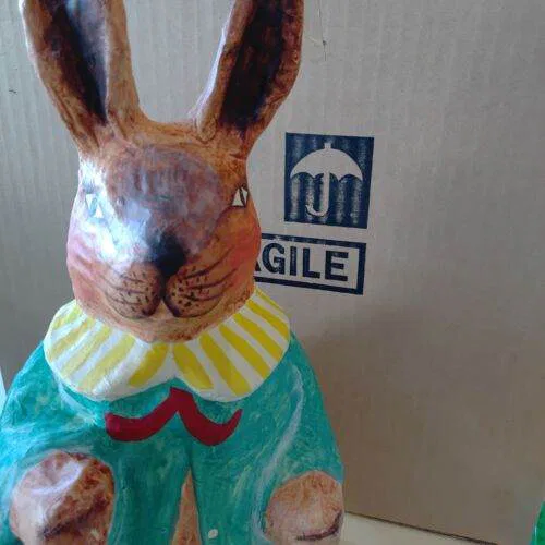 Cartapesta Decorato A Mano coniglietto con giacca verde raro da collezione
