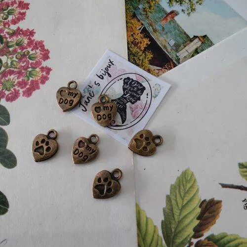 Charms Ciondoli My Dog Cane Zampa Cuore 6 PZ (Cod.BB17) Bigiotteria Bronzo
