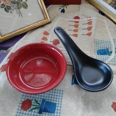 Ciotola / Cucchiaio Salsa Soia ceramica Nera Marrone orientale Sushi Riso