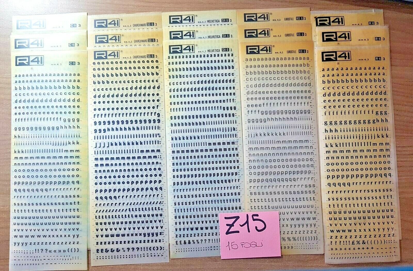 COD Z15 Lotto R41 trasferibili 15 fogli 25X8,5 introvabili LETTERE 4,3 MM