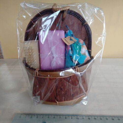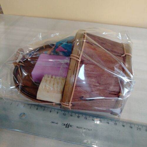 D) Cestino legno Saponetta fiori secchi Spazzola idea regalo artigianale