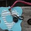 1 targhetta/chiudipacco realizzata con cartoncini intagliati e ciondolino in metallo (misure 5,5x5,5cm circa)