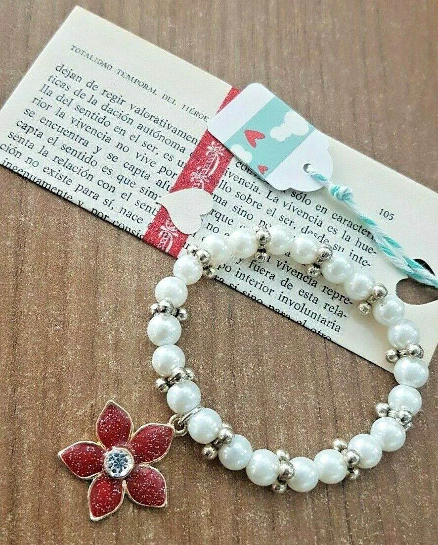 Hope Infinity Bracciale Hand Made Bianco Fiore Rosso Segnalibro handmade flower