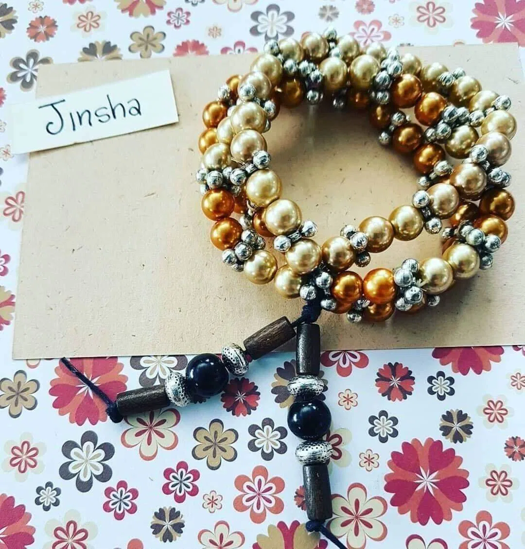 HOPE INFINITY triplo bracciale “Jinsha” golden sand etnico handmade tibet nepal