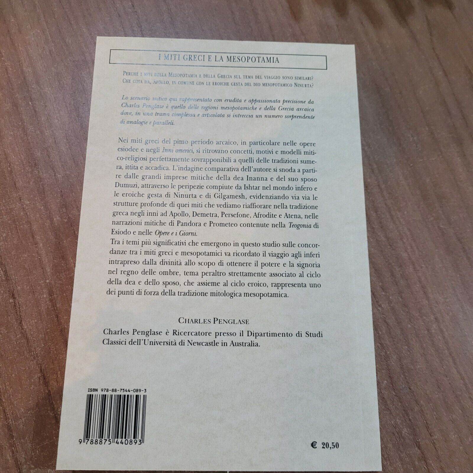 I MITI GRECI E LA MESOPOTAMIA CHARLES PENGLASE ECIG LIBRO NUOVO STORIA MITOLOGIA