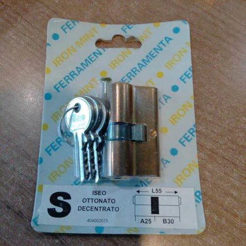 ISEO – Cilindro Decentrato Sagomato Ottonato S 55 25 30 404002075 3 Chiavi