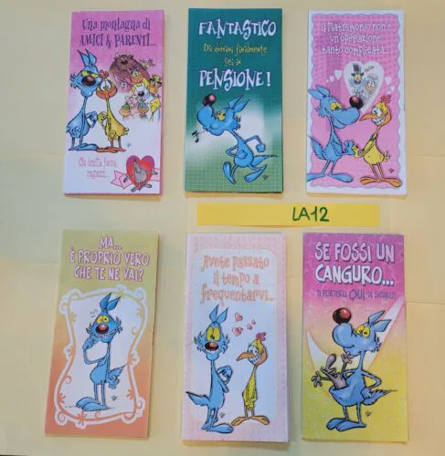 LA12 6pz LOTTO LUPO ALBERTO BIGLIETTI AUGURI MaXi poster illustrato CARTOLERIA