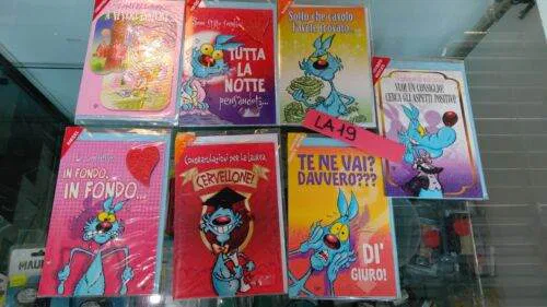 LA19 7pz LOTTO LUPO ALBERTO BIGLIETTI AUGURI stock CARTOLERIA collezione