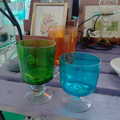 MR6) Set 3 Bicchieri In Vetro Artigianato MammaRo’ Toscana Vintage Rari Colorati