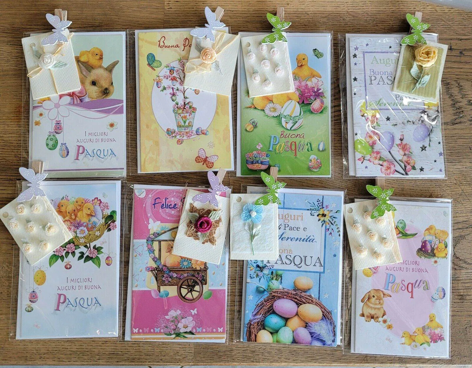 P5 PASQUA biglietti auguri con bustina chiudipacco hand made molletta decorati