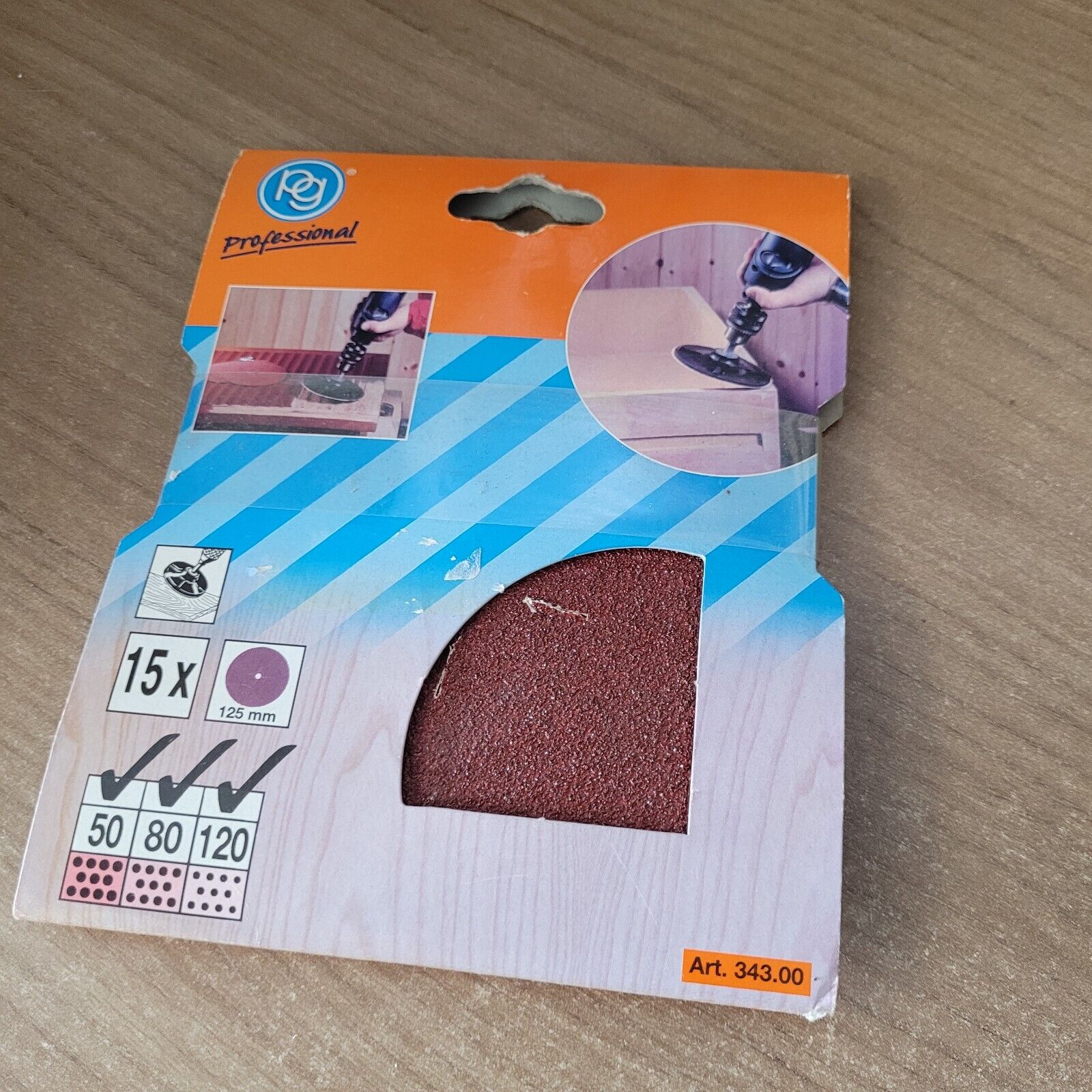 PG ART.343.00 CONF.15 FOGLI DISCHI ABRASIVI 125MM 50 80 120 CARTA SPAZIATA