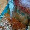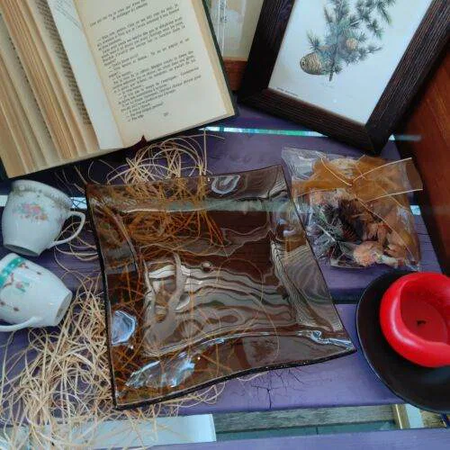 Piatto Vetro Quadro Irregolare Con Fiori Secchi Ambra Bruciata Svuota Tasche