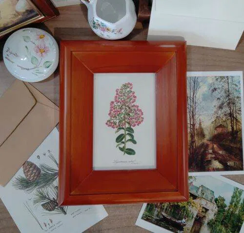 QB1) Quadro Cornice Legno Stampa Botanica (Lagerstroemia Indica) Legno Vintage