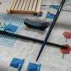 1 set / coppia bacchette in legno con appoggia bacchetta in ceramica
