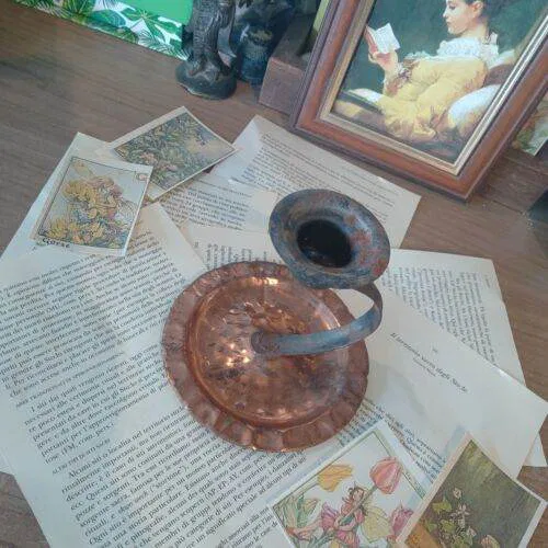 V1) Vecchio Portacandele Ramato Vintage Porta Candela